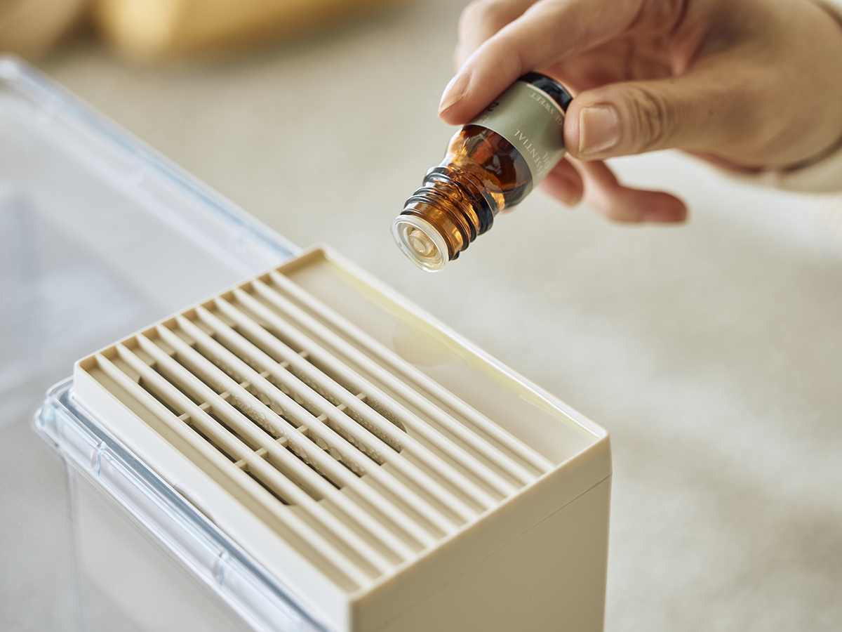 蒸気にお好みの香りをプラスできるアロマトレイ付き