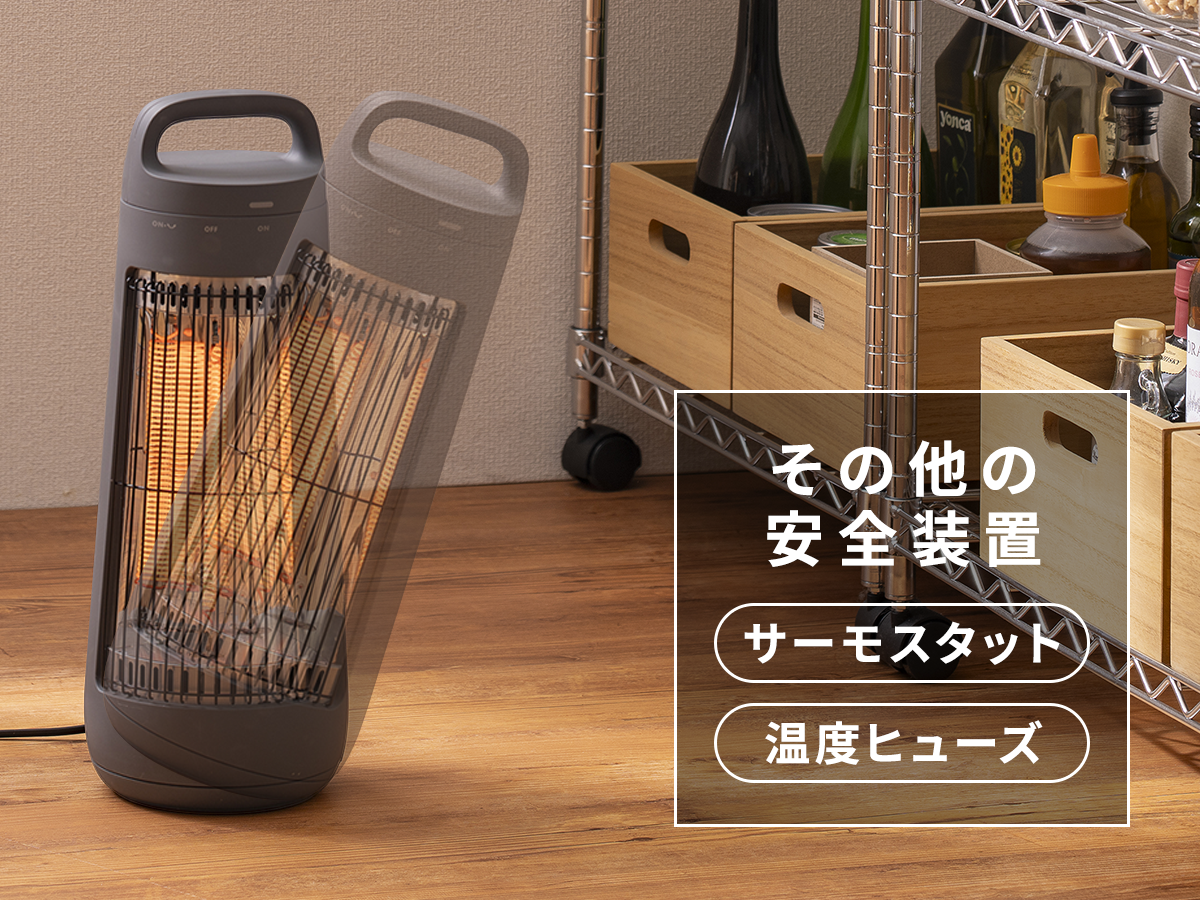 万が一本体が転倒してしまった場合、火災などの事故を防ぐために、自動的に電源がオフになります。